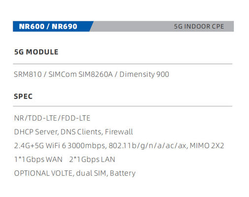 5G CPE modem WiFi 6 Router NR NSA / SA Draadloze CPE Spanning Gigabit Ethernet